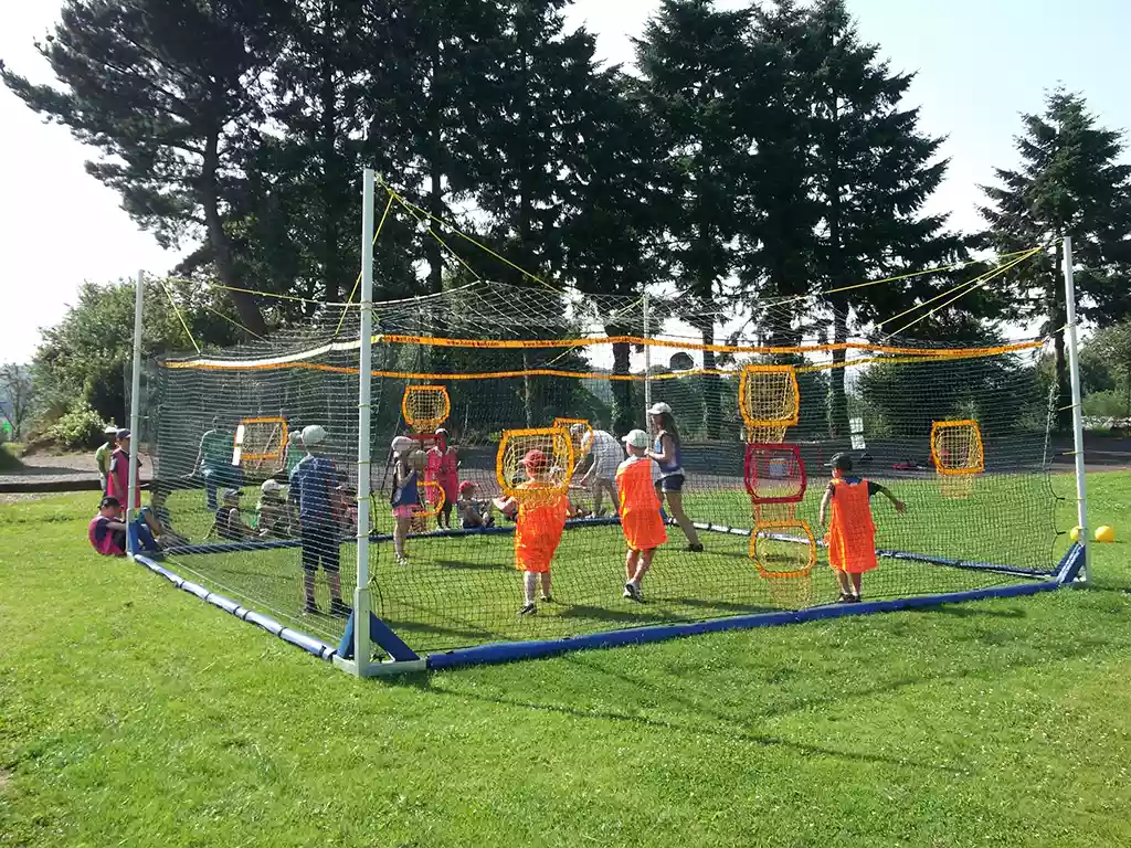 Un terrain de jeux de 6000m² avec homeball, minigolf, balançoire, toboggan, cabane pour les enfants, terrain de foot et de volley, terrain de boules, tables de ping-pong, jeu d'échec et puissance 4 géants.