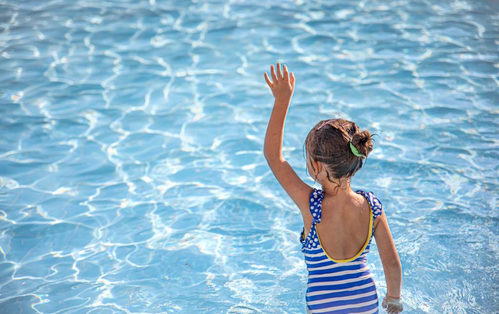 Une piscine chauffée avec jacuzzi, couloir de nage et pataugeoire :