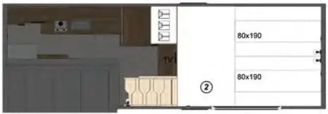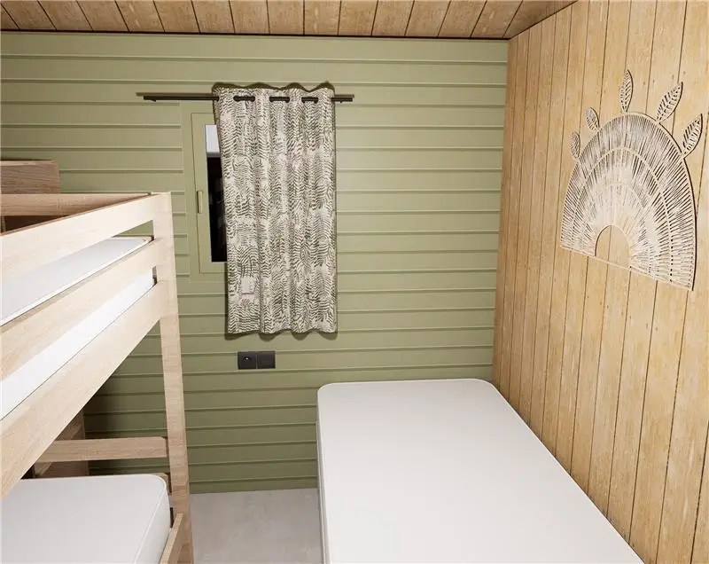 - 2 lits côte à côte et un lit superposé : 80x190cm