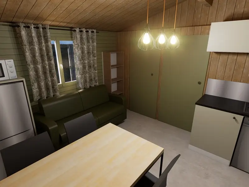 Choisissez votre style : chalet en bois pour 4 à 5 personnes ou tiny house pour 4 personnes.