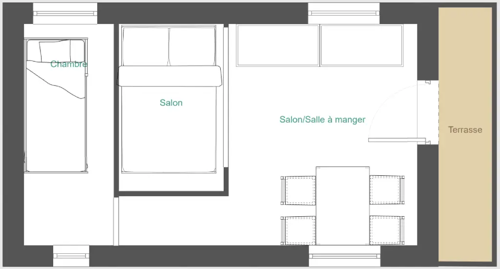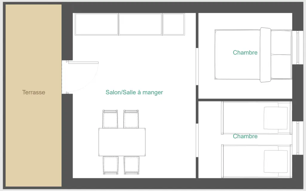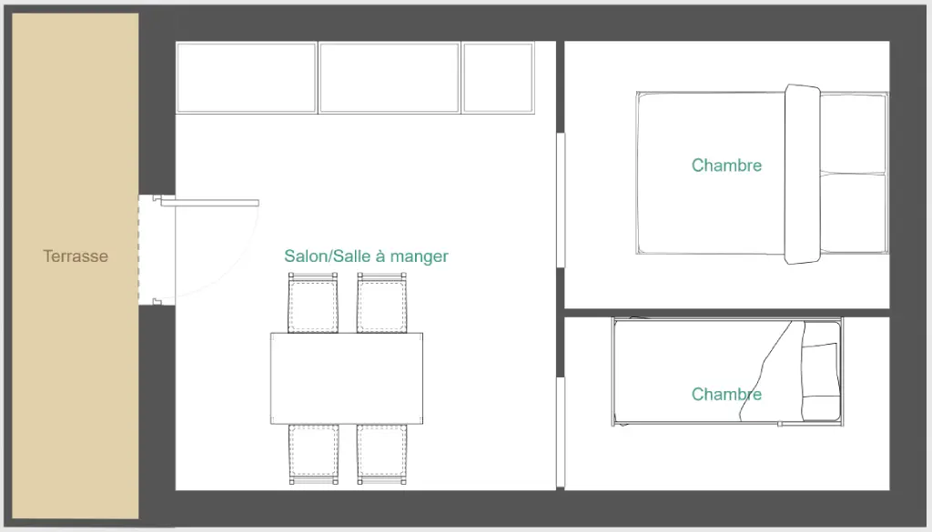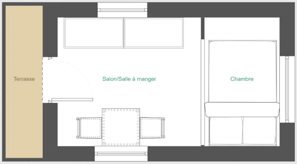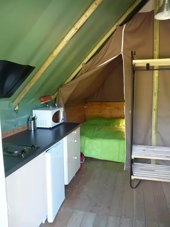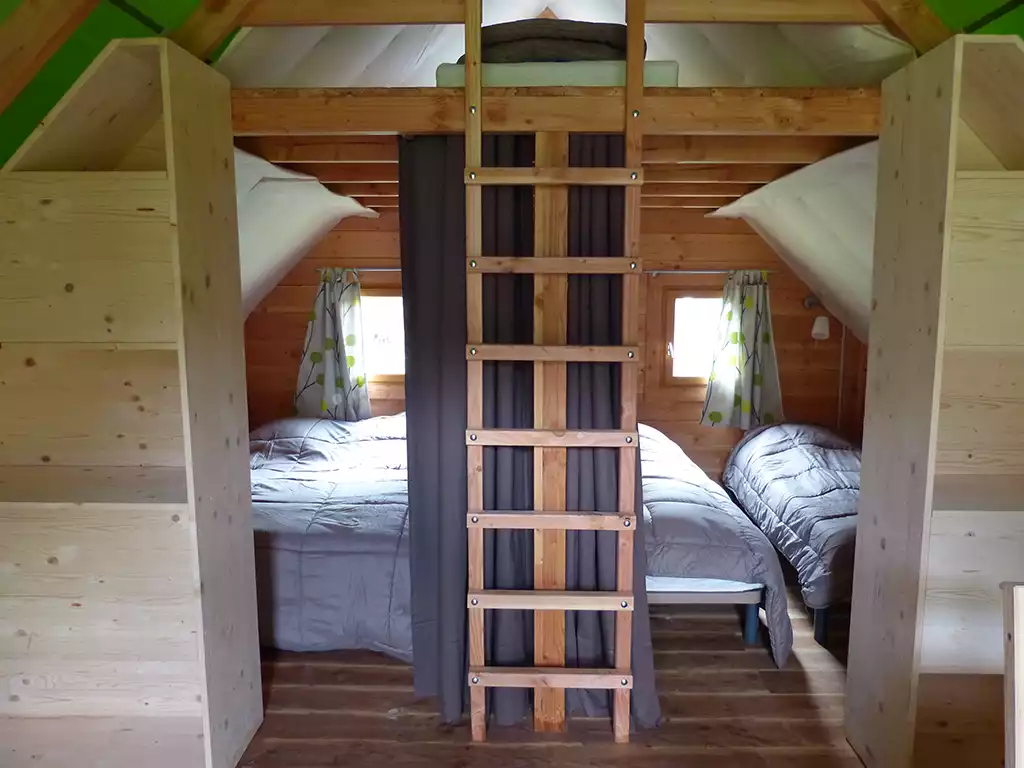 - 1 mezzanine avec 1 lit simple : 80x190cm